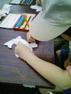 チビはこいのぼり製作中